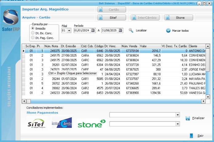 - Conciliação de cartões de crédito e Conciliação bancária